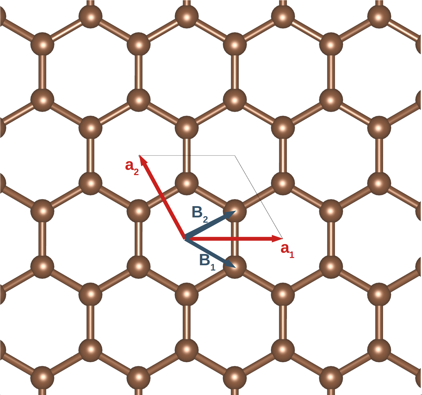 atoms, equally spaced. A line through any pair of titanium (gray) or
